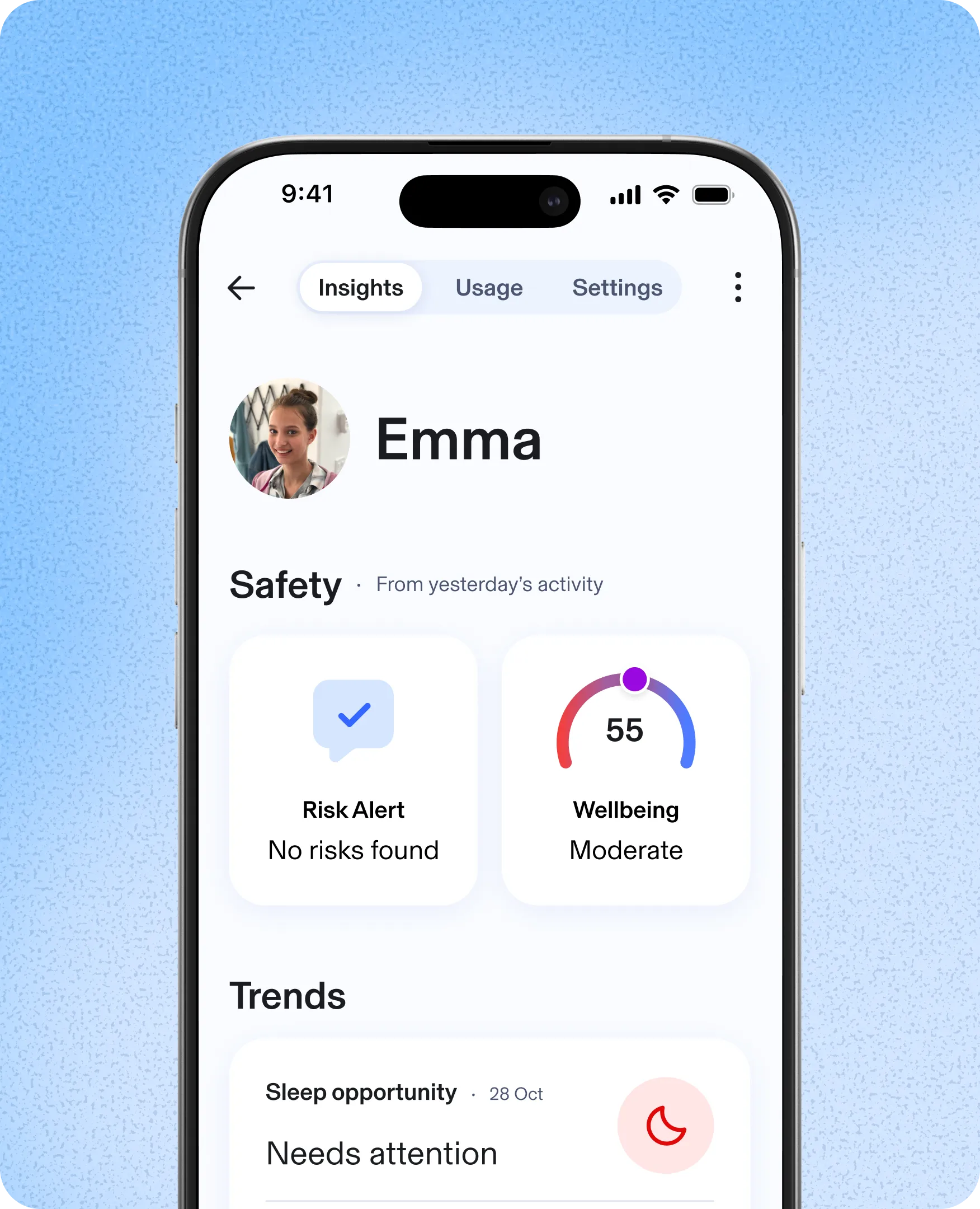 Wellbeing Score Understand how consistent your kid’s digital wellbeing is with a unique indicator based on digital signals. | ||